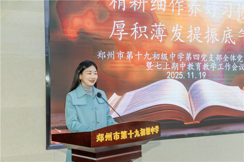 “欲粟者务时,欲治者因势。”为进一步总结教学经验,精准分析学情,有效调整教学策略,助力学生成长,11月19日下午,郑州市第十九初级中学在办公楼六楼会议室召开了第四党支部全体党员大会暨七年级期中教育教学工作会议。学校中层以上领导及全体七年级教师参与了此次会议。会议由年级长郭圣洁主持。