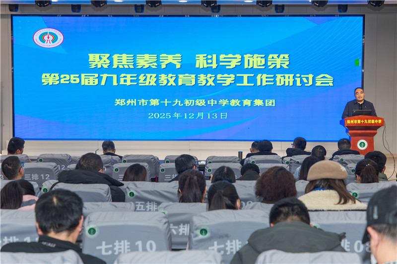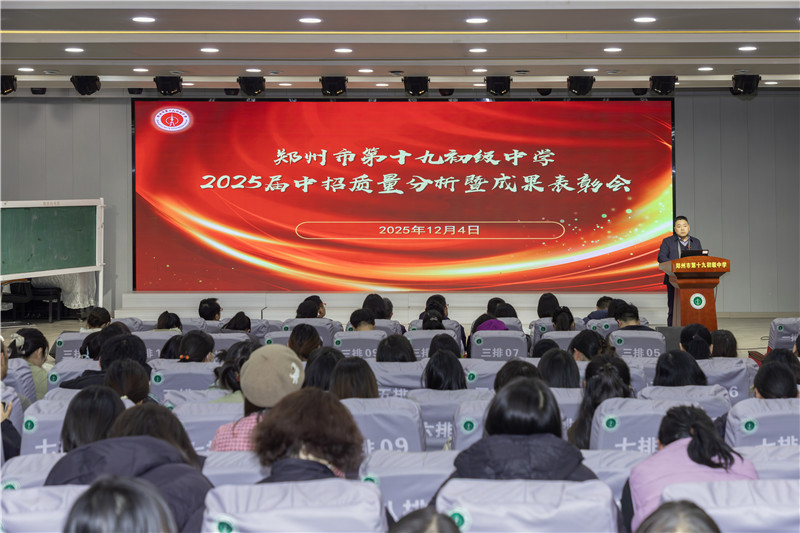 深析既往以砺行,远望新程而图强。为进一步巩固教育教学成果,精准谋划未来发展路径,2025年12月4日下午,郑州市第十九初级中学召开2025届中招质量分析暨成果表彰会。本次会议由教务处副主任朱昌盛主持,学校全体教师参会。