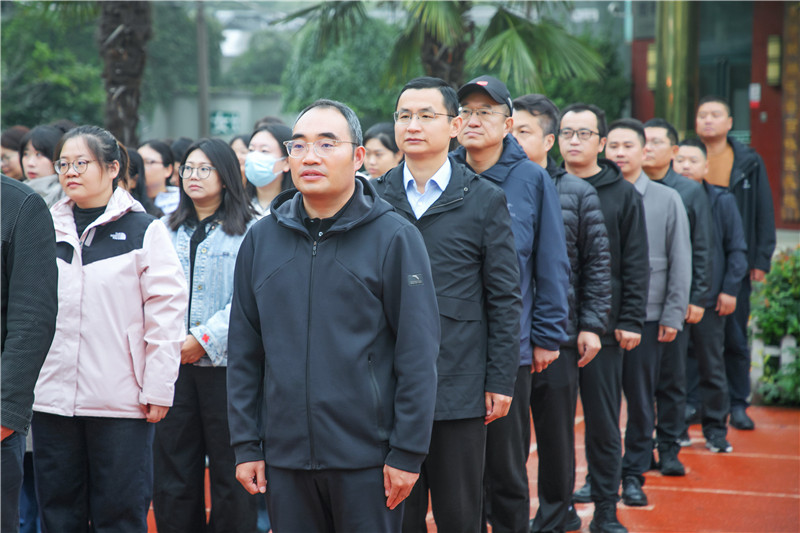 仪式进行第一项,升国旗,奏唱国歌。校2027届国旗护卫队的同学们迈着矫健的步伐,护送着鲜艳的五星红旗走向升旗台。伴随着雄壮激昂的《义勇军进行曲》,五星红旗冉冉升起,全体师生肃立注目,右手举过头顶行注目礼,嘹亮的歌声响彻校园,爱国情怀与安全守护的责任感在每个人心中悄然升腾。