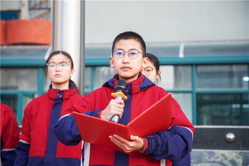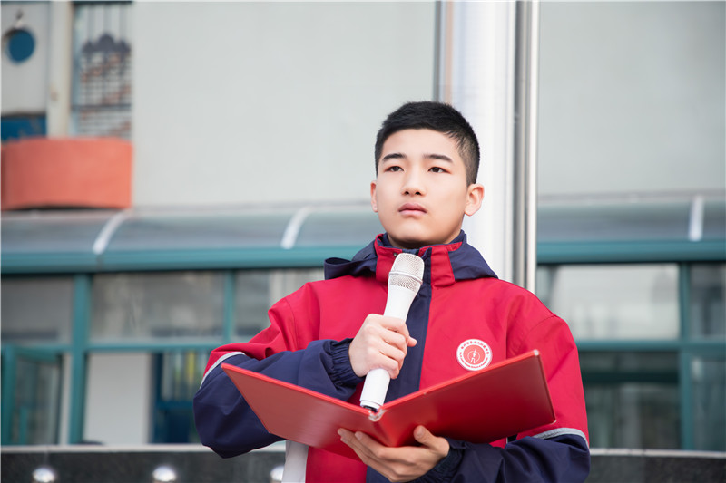 仪式第一项,升国旗,奏唱国歌。马梓郡、孙诚明、赵晨硕、彭井开、王清瑶、李蔷薇、张笑语同学担任升旗手、护旗手,他们身姿挺拔,眼神坚定,满是青春朝气。伴随着雄壮的国歌,五星红旗在全体师生的注目下缓缓升起,鲜红的旗帜迎风展开,激昂的旋律在校园里久久回荡,深深触动着每一位师生的爱国心。