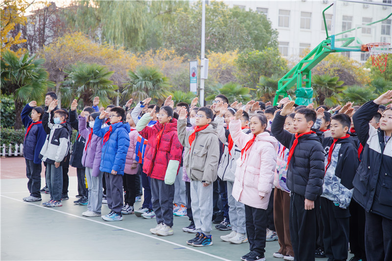 在国家宪法日即将到来之际,为深入贯彻落实法治教育精神,引导学生树立法治观念、增强法律意识,12月1日上午,郑州市第十九初级中学全体师生整齐列队于操场,隆重举行“崇法向善,逐梦韶华”主题升旗仪式,升旗仪式由紫荆广播站康芷诺主持。