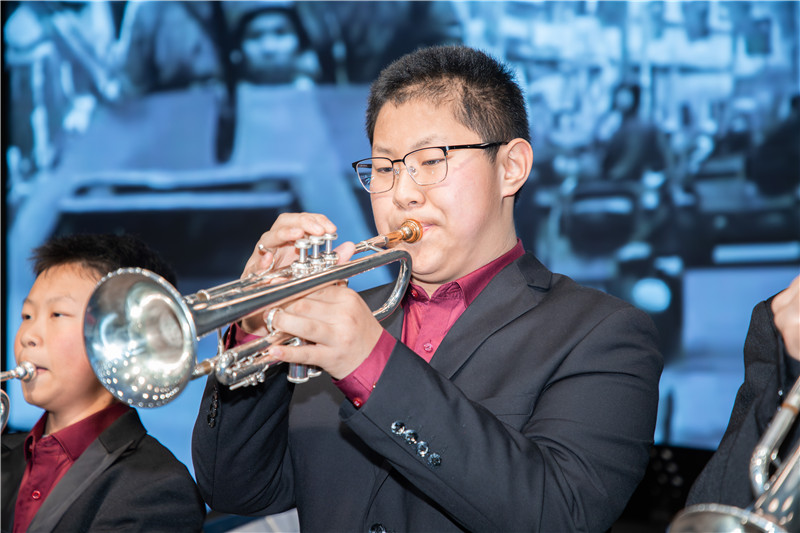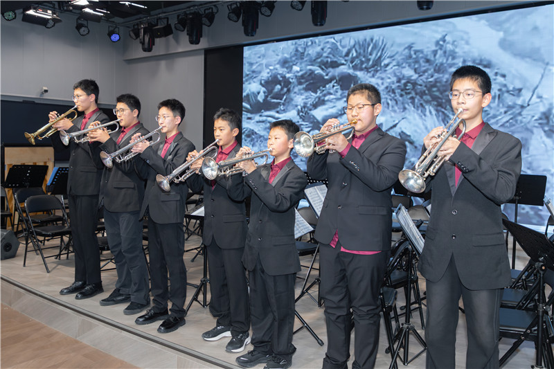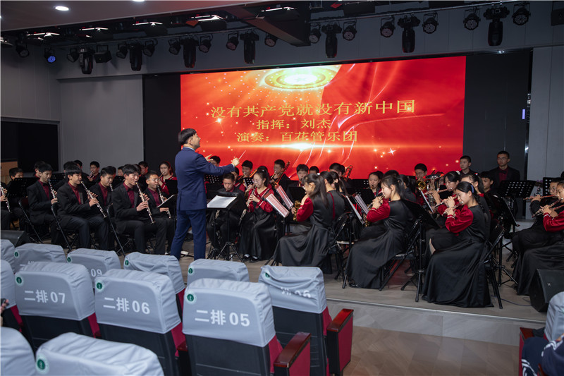管乐齐鸣颂党恩,初心如磐向未来。激昂奋进的旋律奏响《没有共产党就没有新中国》,每一个音符都饱含着对党的无限热爱与感恩。旋律穿越时空,印证着“没有共产党就没有新中国”的真理,让在场师生深切感受到党的领导是民族复兴的根本保障。