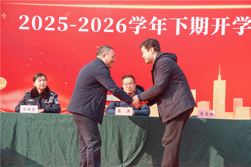 学校党总支书记、校长朱玉国发表新学期致辞,并讲授开学思政第一课。朱书记围绕强健身心、谋定后动、逐光而行、向善向美四个关键词深情寄语。他强调,要坚持身心健康为本,积极参与体育锻炼,保持良好作息与积极心态,以强健的体魄、健康的心理迎接学习与生活;要学会科学规划、谋定后动,把目标分解落实,脚踏实地、厚积薄发;要心怀理想、逐光而行,勇于面对挑战,在奋斗中成长进步,将个人成长融入时代发展;要涵养品德、向善向美,懂得感恩、珍惜情谊,在校园中传递温暖与善意,努力成长为有理想、有本领、有担当的新时代少年。新征程催人奋进,新使命呼唤担当。朱书记希望全体师生牢记仰望星空、崇尚实干的校训,坚定信念、砥砺品格、奋勇争先,在新的学期凝心聚力、笃行不怠,以昂扬向上的精神风貌书写更加优异的育人答卷。