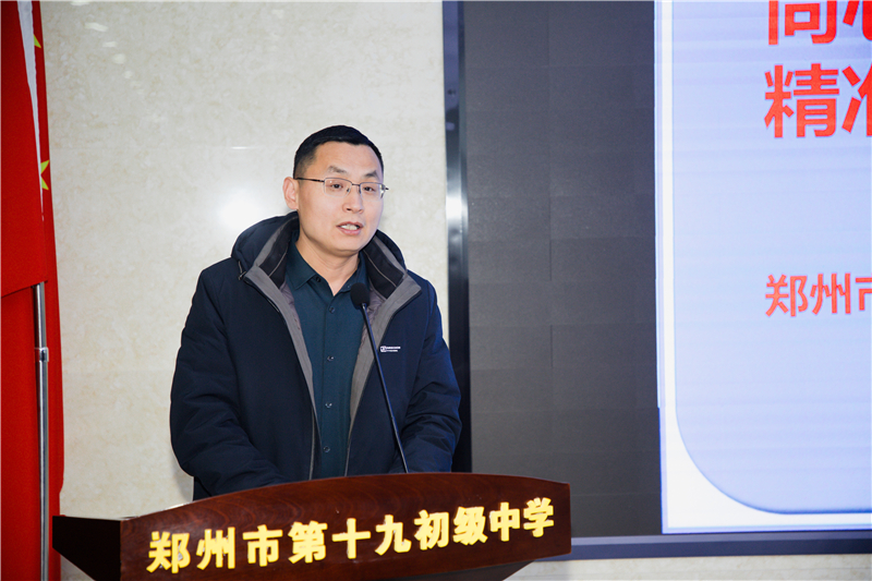 为总结上学期工作经验,全面做好新学期教育教学工作,凝心聚力求突破,2026年3月12日,郑州市第十九初级中学召开了第三党支部全体党员大会暨九下新学期工作会。学校党总支书记、校长朱玉国、副校长冯超强及全体九年级教师参与会议。会议由九年级年级长姚孩主持。