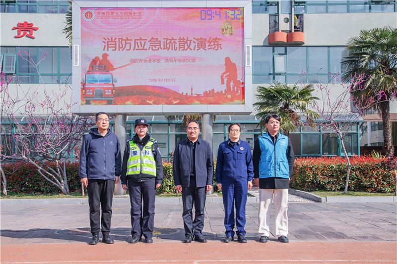 为切实增强师生消防安全意识,提升应急避险与自救互救能力,3月20日,郑州市第十九初级中学联合伊河路社区、林山寨派出所、中原区消防救援大队,共同开展“消防安全进校园,共筑平安防火墙”主题教育活动。本次活动由政教处副主任郭永保统筹组织,通过实战演练与安全宣教相结合的方式,将安全理念深植师生心中。