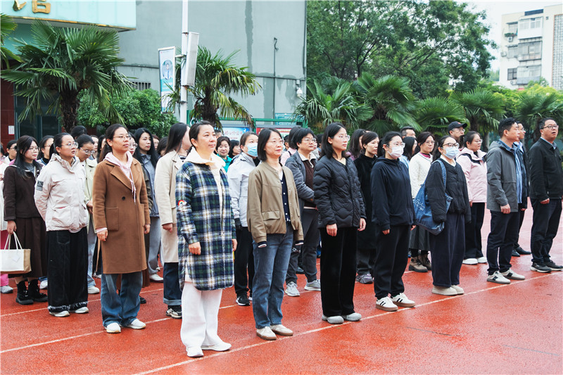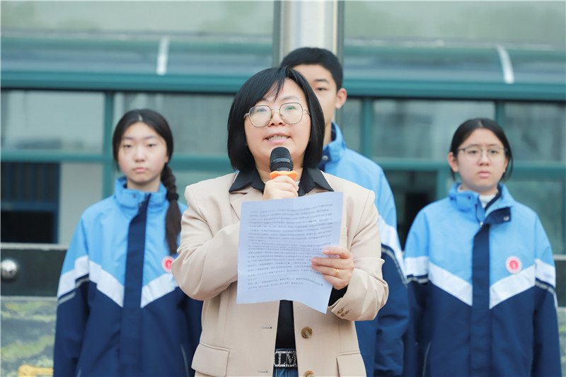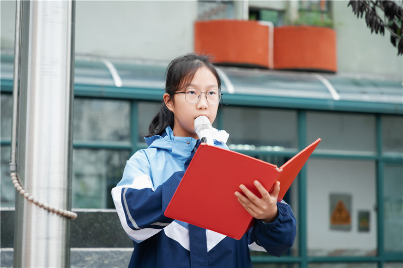 仪式进行第三项,本周点评。政教处主任陈薇首先感谢国旗护卫队、紫荆广播社及指导老师的坚守与奉献,肯定其为校园注入活力。随后介绍十月校园活动,包括多社团招新、校本课程开课及郑州市科技运动会,并表彰校内师生事迹:优秀篆刻作品入围全国决赛,无人机社团及多名学生在科创赛事中获奖。还以非遗传播者南翔的事例,激励学生坚持热爱。最后,她提及新学期的成长常态,鼓励学生发现并坚守自身“闪光点”,无论是学习细节还是品德行为,呼吁师生在新一周认真学习、努力生活,成长为更好的自己。