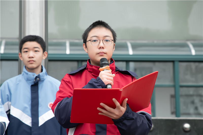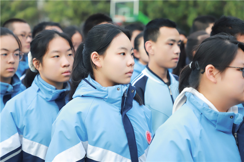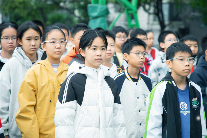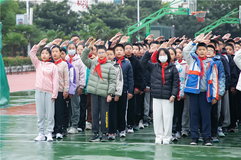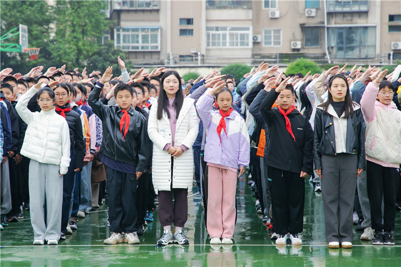 仪式进行第一项,升国旗,奏唱国歌。校2027届国旗护卫队的同学们迈着矫健的步伐,护送着鲜艳的五星红旗走向升旗台。伴随着雄壮激昂的《义勇军进行曲》,五星红旗冉冉升起,全体师生肃立注目,右手举过头顶行注目礼,嘹亮的歌声响彻校园,爱国情怀与安全守护的责任感在每个人心中悄然升腾。