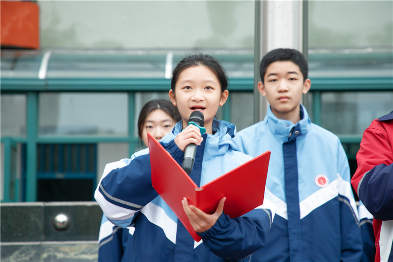 仪式进行第二项,国旗下演讲。紫荆广播站陈瑞恩、康芷诺以《未雨绸缪守安全,朝气蓬勃向未来》为主题发表演讲。他们强调安全是成长的基石,并从四方面给出具体建议:一是严守交通规则,保障上下学安全;二是拒绝校园欺凌,以包容化解矛盾,遇困境及时求助;三是遵守校规校纪,课间文明活动、体育课依规训练;四是按时放学回家,不让父母牵挂。最后呼吁师生将安全意识转化为行动,共同守护校园安全与和谐。