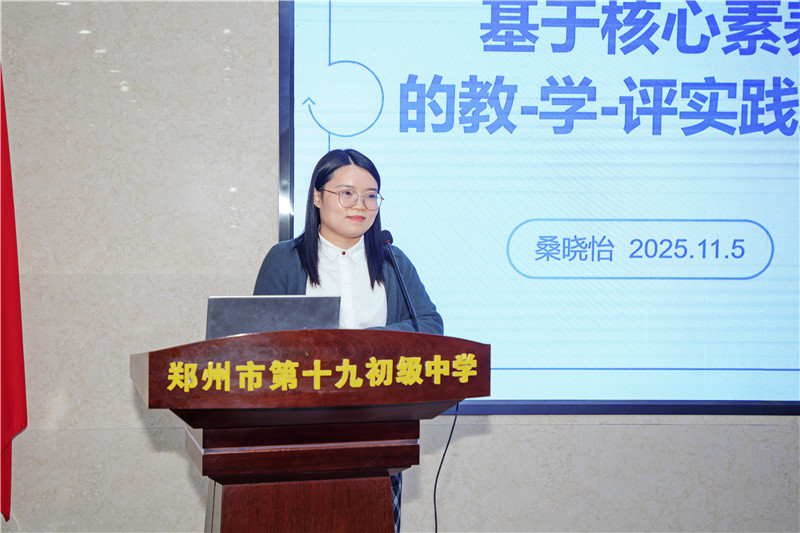 为进一步深化课堂教学改革,推动核心素养落地,提升教师教学设计与评价能力,2025年11月5日下午,郑州市第十九初级中学教育集团组织开展了以“基于核心素养的教学评实践”为主题的教师发展共同体活动。本次活动由桑晓怡老师主讲,教务主任陈正和主持,副校长冯超强及集团内全体青年教师共同参与。