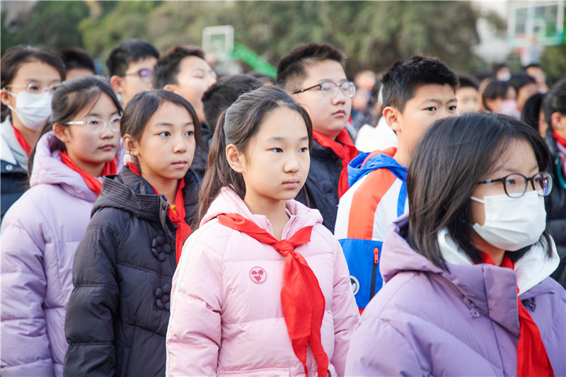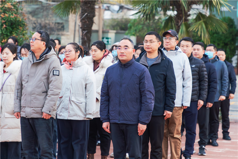 仪式进行第一项,升国旗,奏唱国歌。国旗护卫队的同学们迈着矫健的步伐,护送着鲜艳的五星红旗走向国旗台。伴随着雄壮的国歌,五星红旗在全体师生的注目下缓缓升起,鲜红的旗帜迎风展开,激昂的旋律在校园里久久回荡,深深触动着每一位师生的爱国心。