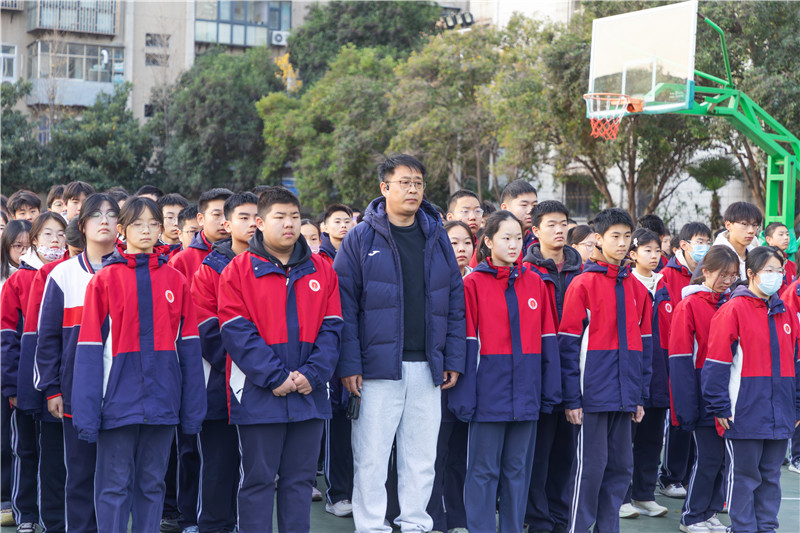 仪式进行第三项,本周点评。政教处副主任郭永保以“于法治之光与生命之痛中砥砺前行”为主题进行点评,他首先提出12月4日是第12个国家宪法日、12月1日至7日为宪法宣传周;接着阐述“宪法周”期间要开展的主题班会等系列活动,将帮助师生深入理解宪法作为国家总章程与公民权利基石的核心内涵。随后谈及香港大火,既对悲剧表示痛心哀悼、致敬救援者,也强调其为沉重公共安全警示,并针对性提出行动要求:班主任做好安全教育,师生规范用电,学生学习安全知识、遵守校园规定;同时指出这些行动是宪法精神的微观践行。最后,他呼吁全体师生将宪法信仰内化于心、安全意识外化于行,共同争做法治秩序的维护者与生命尊严的守护者,携手建设更加安全且有温度的家园。