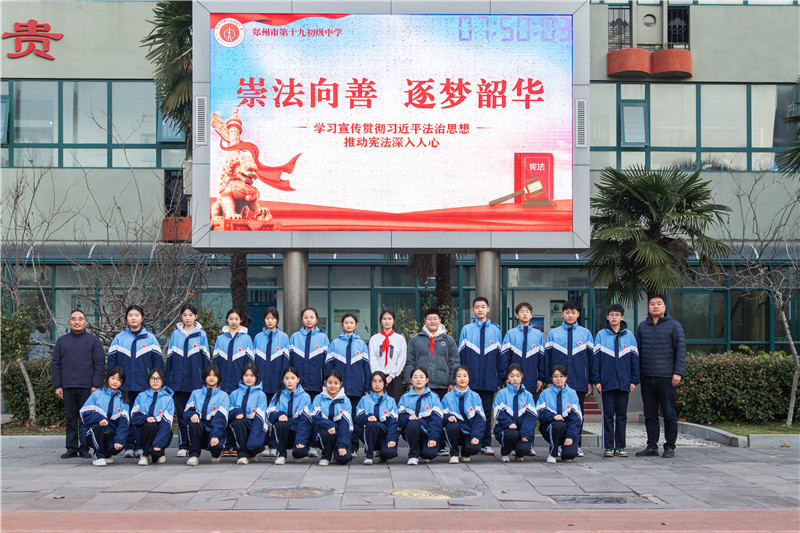 本次升旗仪式有效地弘扬了法治精神,推动了宪法知识传播,郑州市第十九初级中学将持续深化宪法宣传教育,推动法治精神在每个人心中扎根,为建设法治校园、法治社会贡献力量。