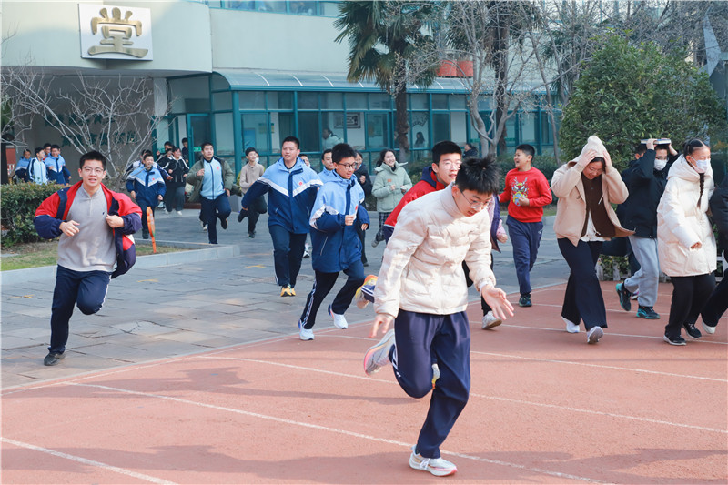 演练警报响起后,全体师生按照应急预案要求,迅速进行室内避险,随后沿指定疏散路线快速、有序撤离至操场安全区域;整个过程组织严密、行动迅速,达到了预期效果。