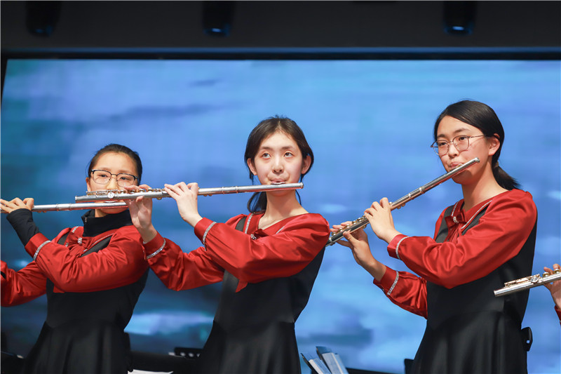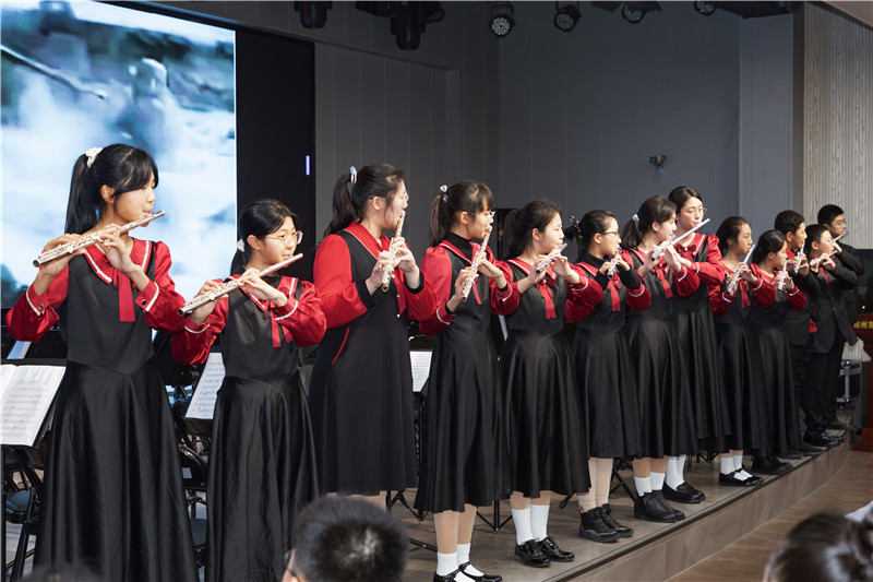 管乐齐鸣颂党恩,初心如磐向未来。激昂奋进的旋律奏响《没有共产党就没有新中国》,每一个音符都饱含着对党的无限热爱与感恩。旋律穿越时空,印证着“没有共产党就没有新中国”的真理,让在场师生深切感受到党的领导是民族复兴的根本保障。