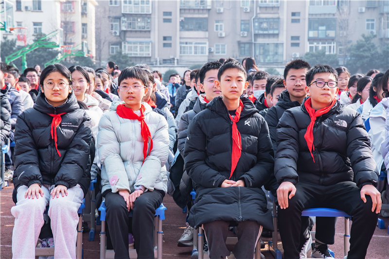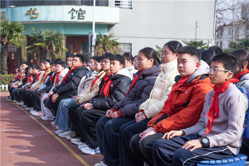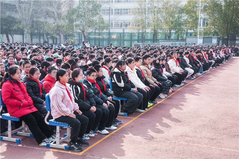学校党总支书记、校长朱玉国发表新学期致辞,并讲授开学思政第一课。朱书记围绕强健身心、谋定后动、逐光而行、向善向美四个关键词深情寄语。他强调,要坚持身心健康为本,积极参与体育锻炼,保持良好作息与积极心态,以强健的体魄、健康的心理迎接学习与生活;要学会科学规划、谋定后动,把目标分解落实,脚踏实地、厚积薄发;要心怀理想、逐光而行,勇于面对挑战,在奋斗中成长进步,将个人成长融入时代发展;要涵养品德、向善向美,懂得感恩、珍惜情谊,在校园中传递温暖与善意,努力成长为有理想、有本领、有担当的新时代少年。新征程催人奋进,新使命呼唤担当。朱书记希望全体师生牢记仰望星空、崇尚实干的校训,坚定信念、砥砺品格、奋勇争先,在新的学期凝心聚力、笃行不怠,以昂扬向上的精神风貌书写更加优异的育人答卷。