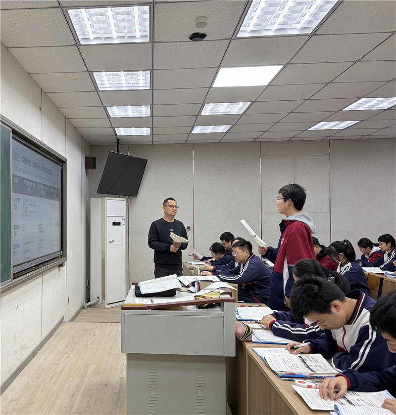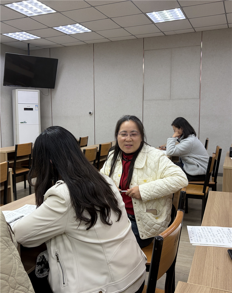 评课指导环节,教研员景瑞鸽、听课教师与授课教师展开深度交流研讨,既充分肯定了两节课的教学亮点,也针对课堂细节提出针对性建议。现场教师彼此分享教学困惑与经验,相互探讨、思维碰撞,共同交流复习课的高效教学方法与实践路径,为古诗文复习教学的优化完善提供了多元思路。
