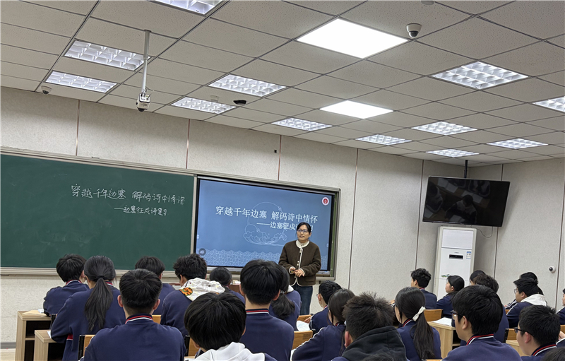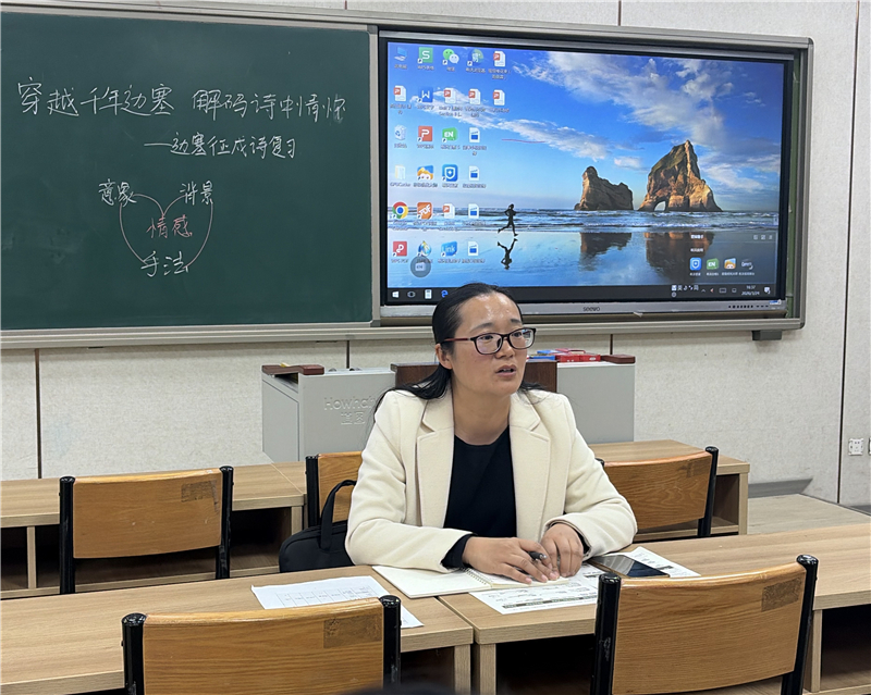 随后,郑州市第十九初级中学语文教师石胜娟进行了以《穿越千年边塞 解码诗中情怀》为课题的课堂展示。本节课脉络清晰、重点突出,以“意象-背景-手法”三维度为抓手,串联起经典边塞诗歌,从基础背默、诗歌品析到迁移训练逐步推进。课堂聚焦方法总结与迁移运用,让学生在探究中体悟边塞诗情怀,提升诗歌鉴赏能力。